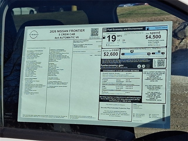 White 2026 Nissan Frontier S 4WD 9-Speed Automatic with Overdrive 3.8L DI DOHC 24V V6
